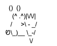 () () (^ .^)|\/\/| / >\ – _/ Ꮼ\_)__ \_-/ \/